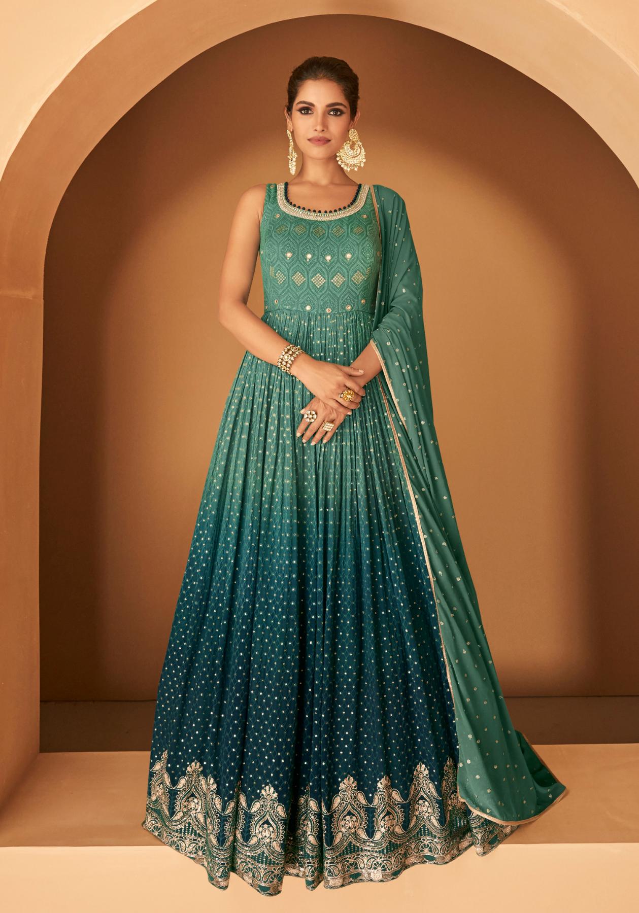 Buy Georgette Dark Sea Green Anarkali Salwar Kameez online.