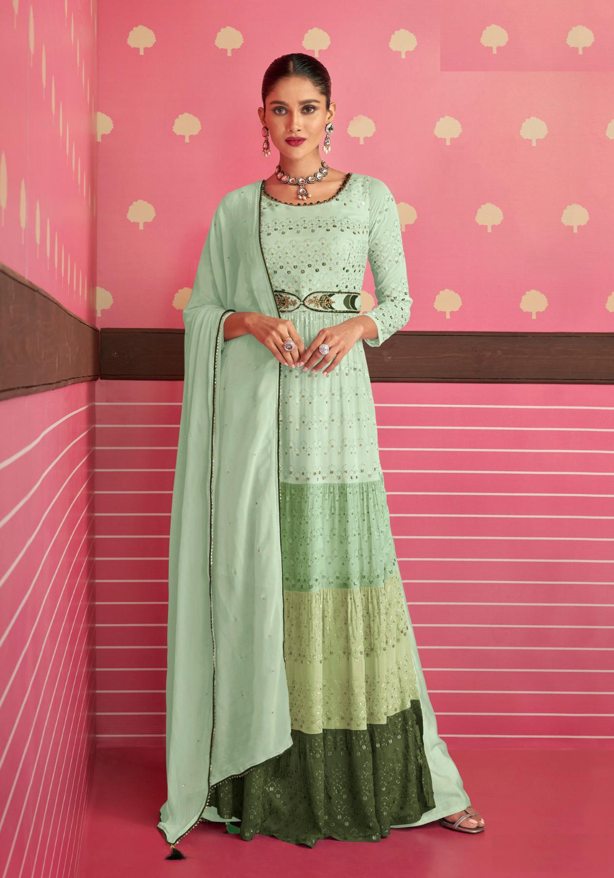 Normally size is measured between the underarm stitching lines from the stressed kameez.