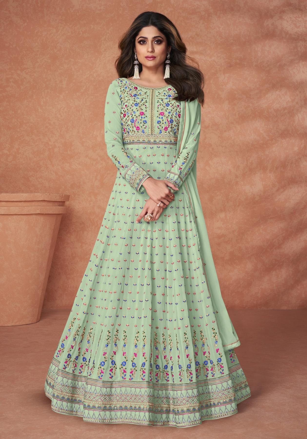 Normally size is measured between the underarm stitching lines from the stressed kameez.