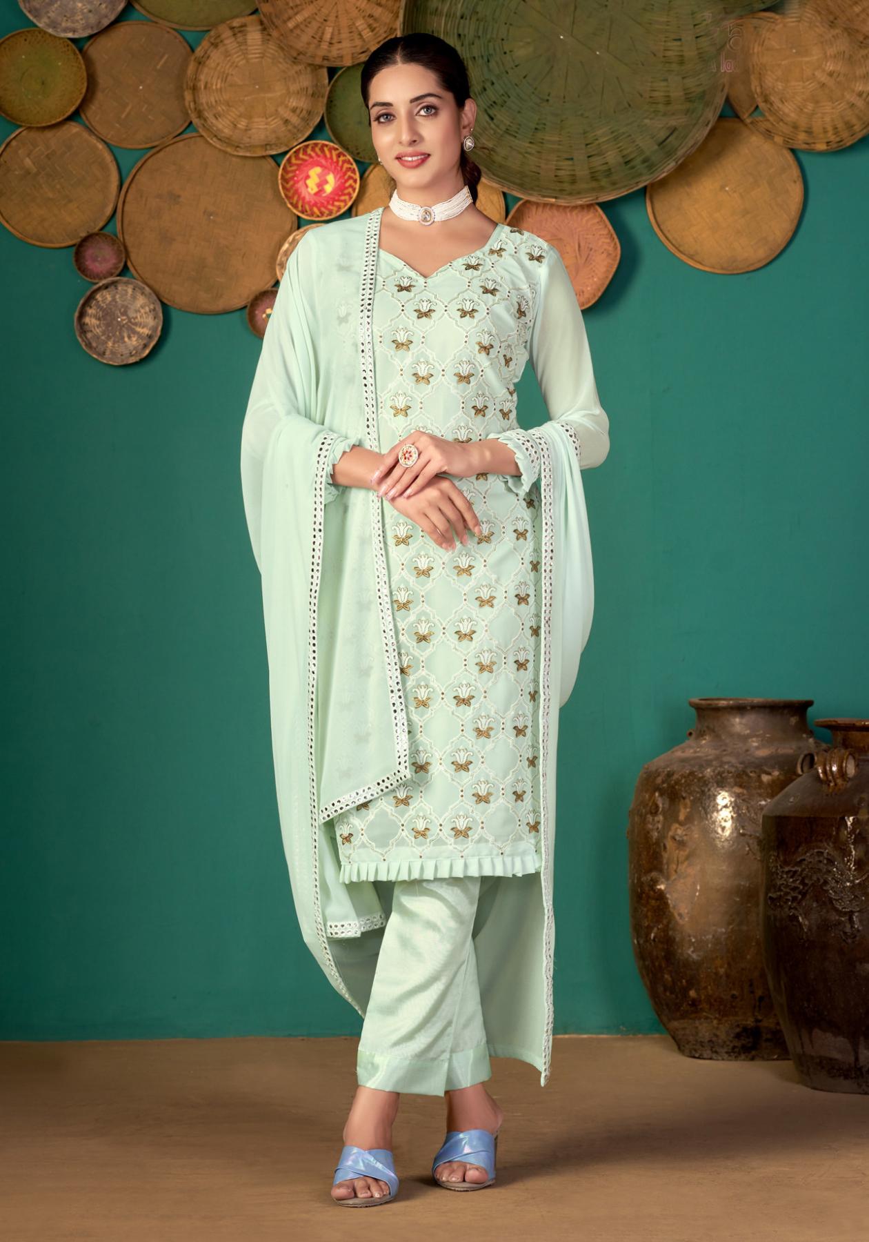 Buy Georgette Dark Sea Green Straight Cut Salwar Kameez online.
