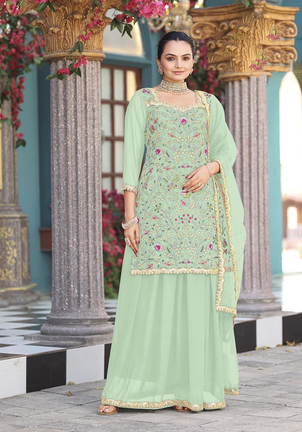 Normally size is measured between the underarm stitching lines from the stressed kameez.
