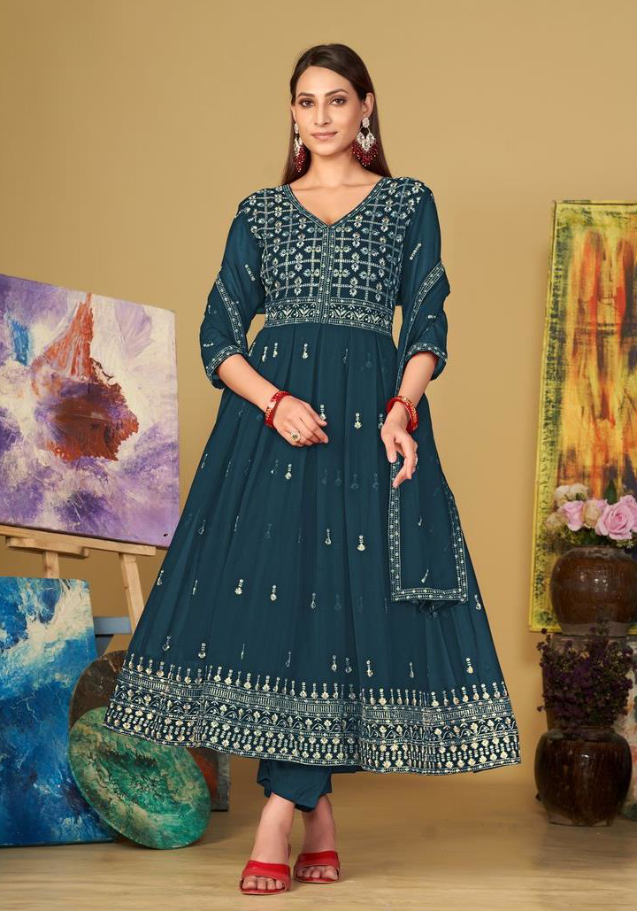 Normally size is measured between the underarm stitching lines from the stressed kameez.