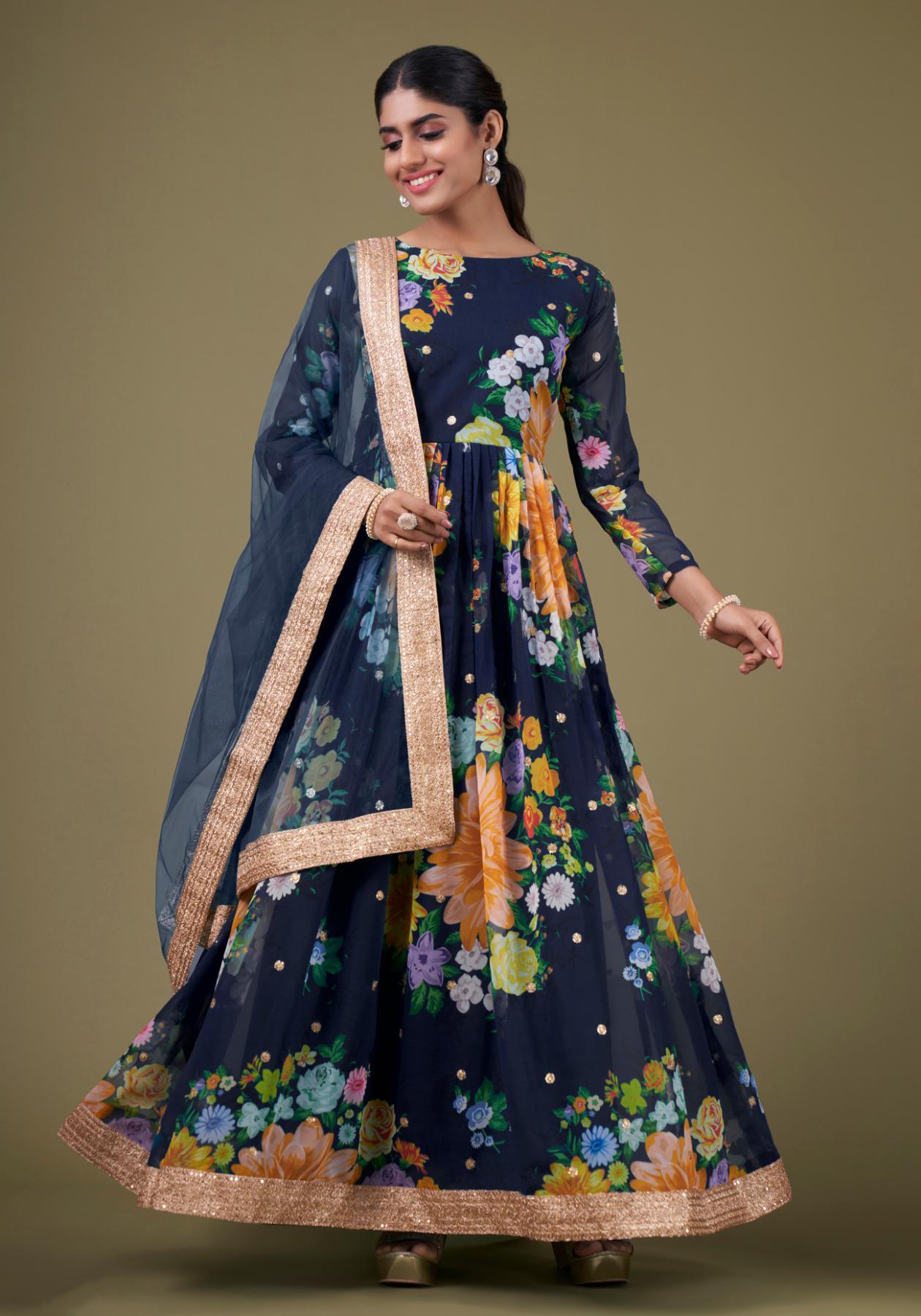 Buy Georgette Dark Slate Grey Anarkali Salwar Kameez online.