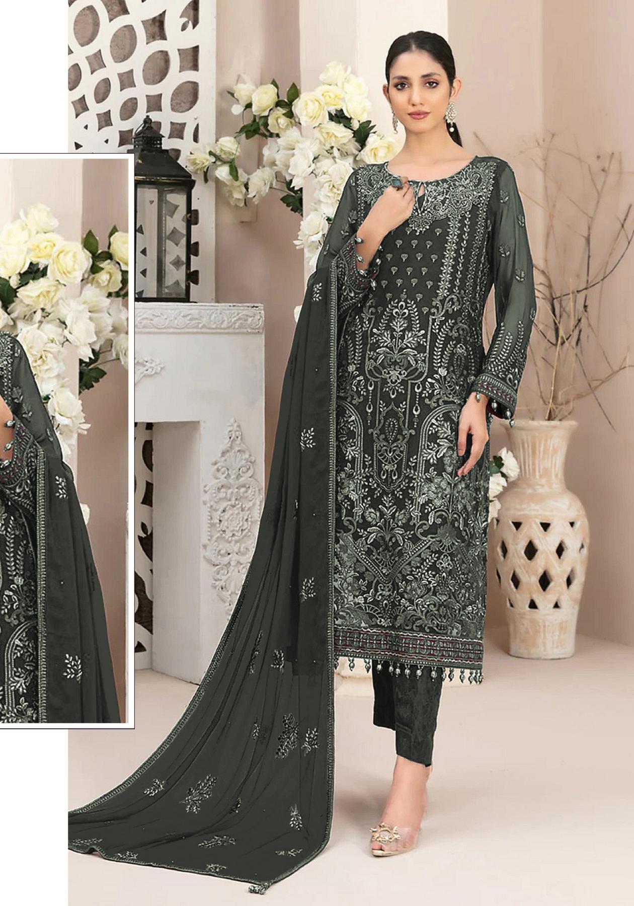 Buy Georgette Dark Slate Grey Straight Cut Salwar Kameez online.
