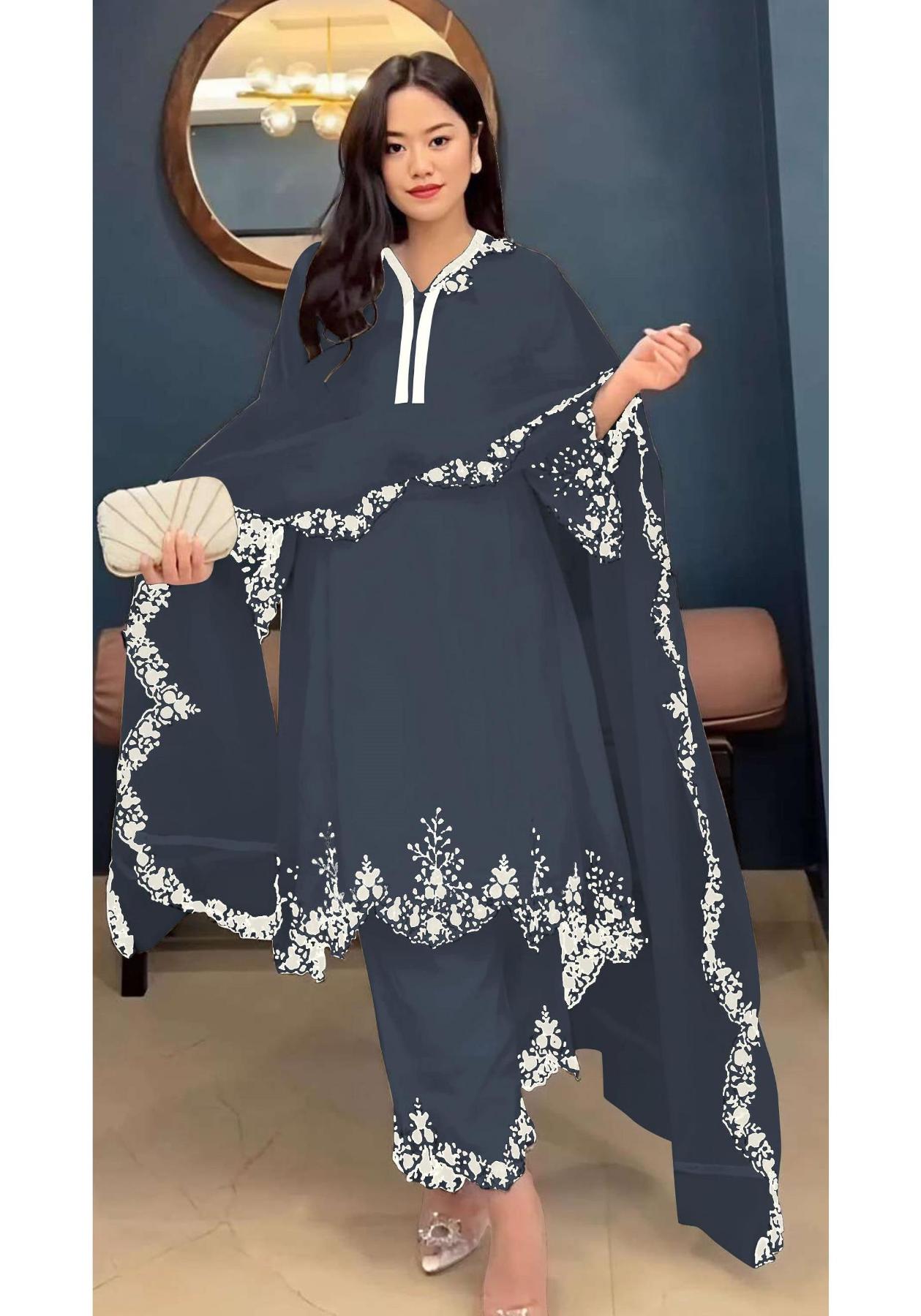 Normally size is measured between the underarm stitching lines from the stressed kameez.