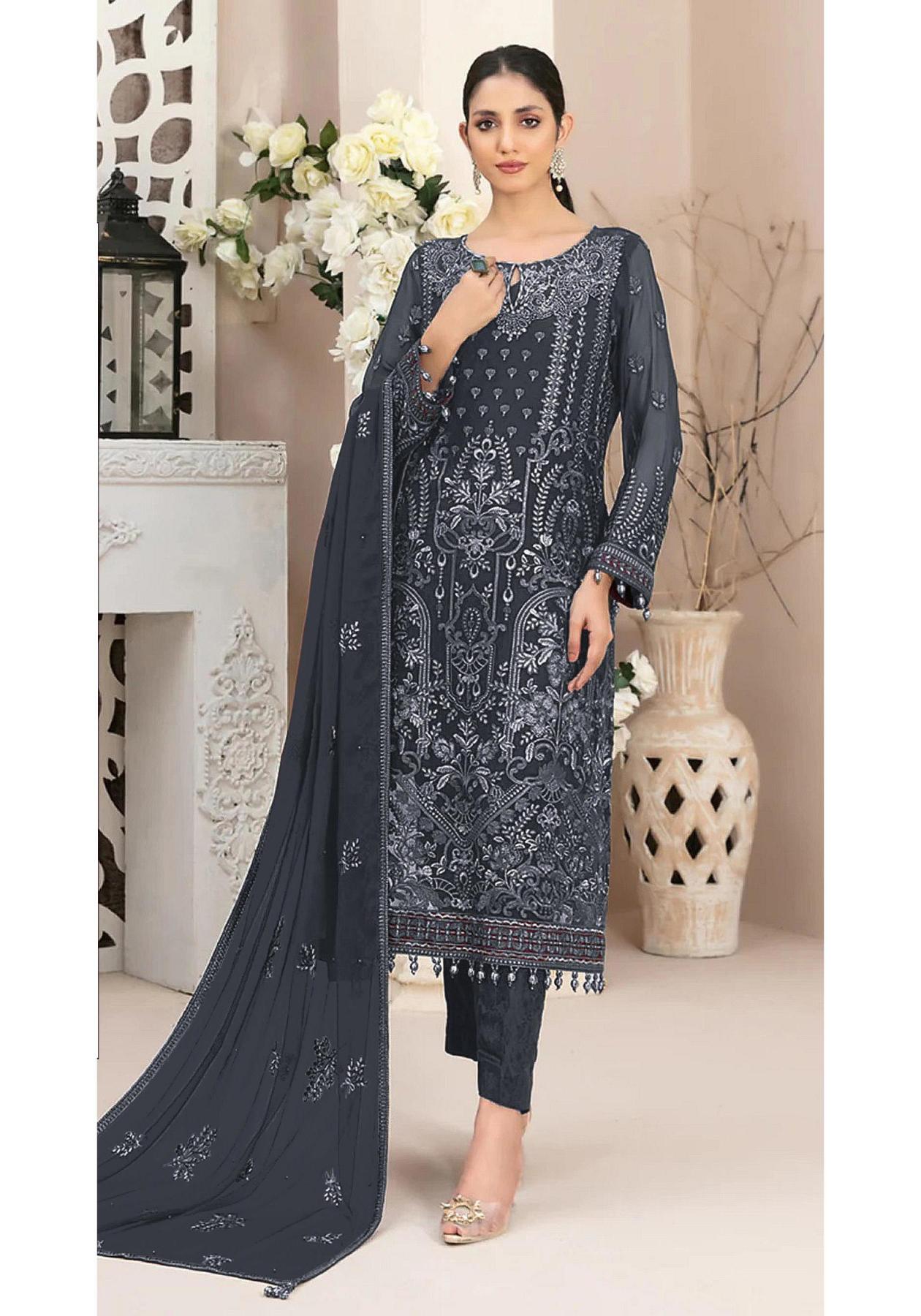 Buy Georgette Dark Slate Grey Straight Cut Salwar Kameez online.