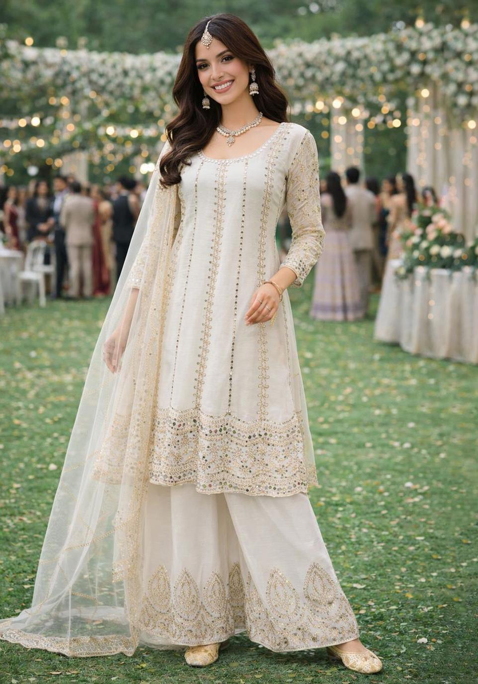 Normally size is measured between the underarm stitching lines from the stressed kameez.