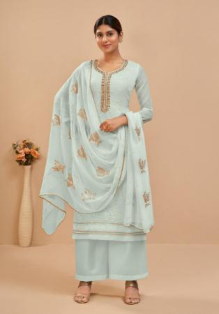 Buy Georgette Ghost White Straight Cut Salwar Kameez online.