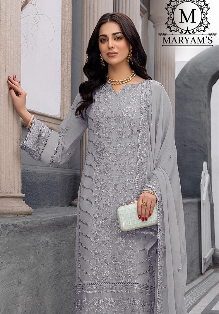 Buy Georgette Light Slate Grey Straight Cut Salwar Kameez online.