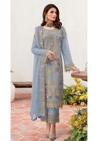 Buy Georgette Light Slate Grey Straight Cut Salwar Kameez online.