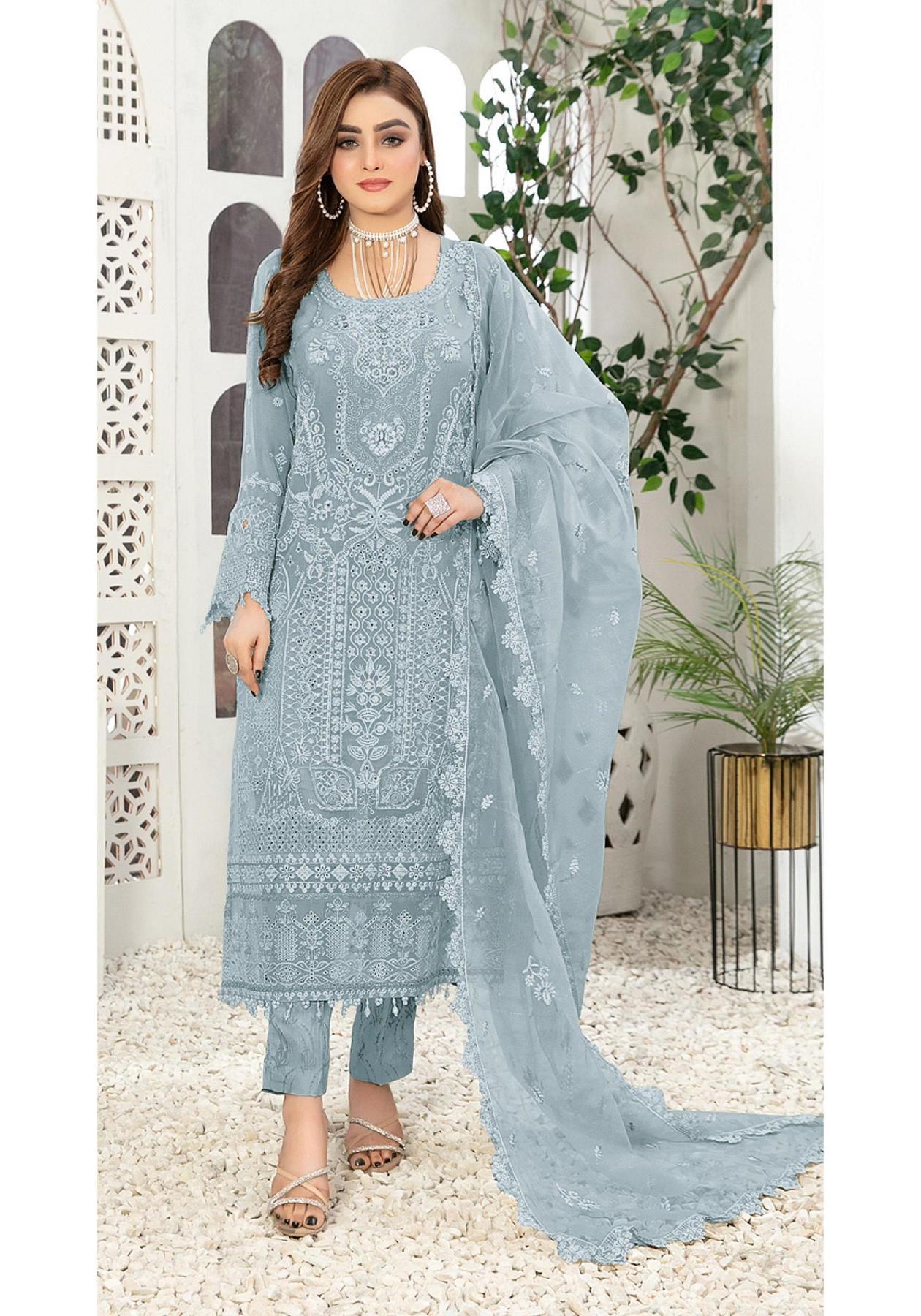 Buy Georgette Light Steel Blue Straight Cut Salwar Kameez online.