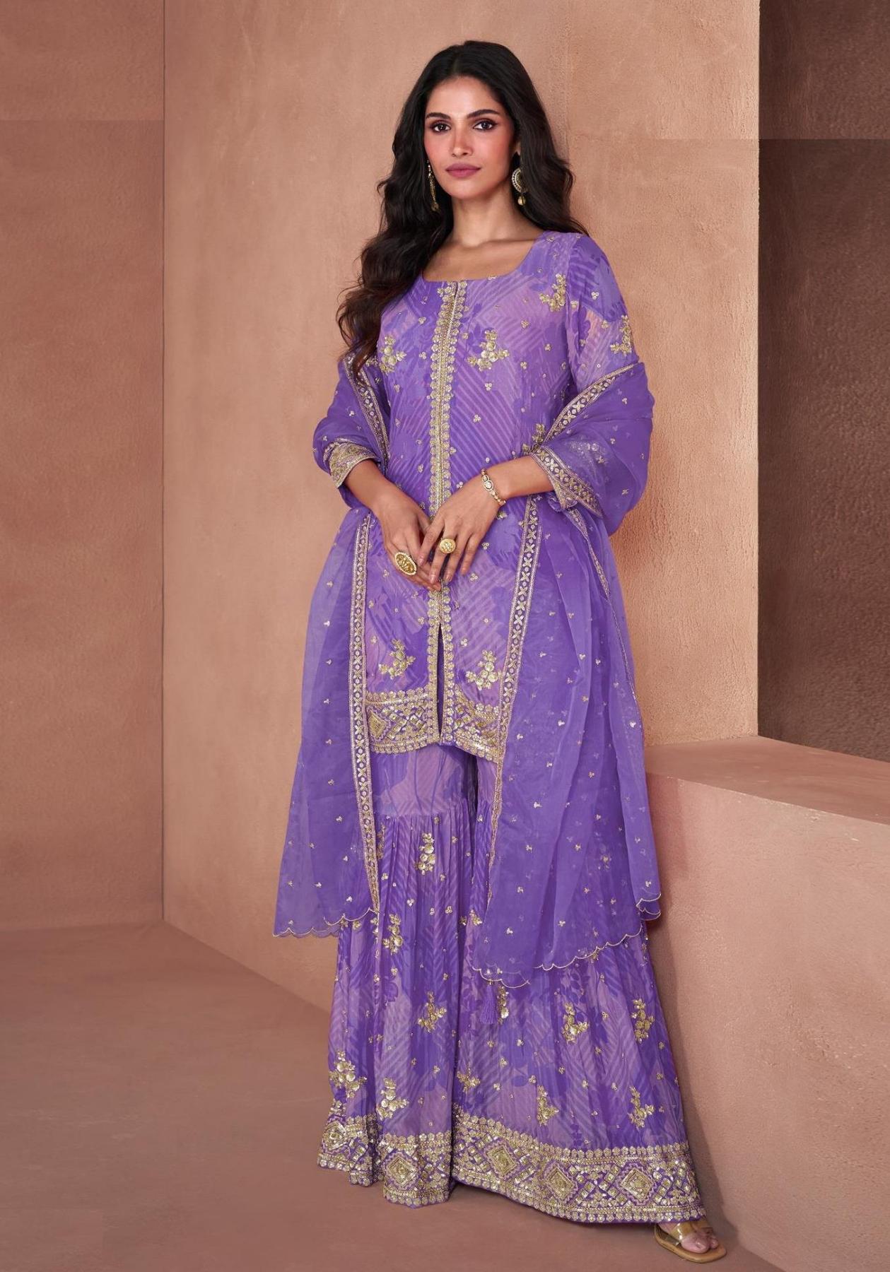 Buy Georgette Medium Purple Straight Cut Salwar Kameez online.