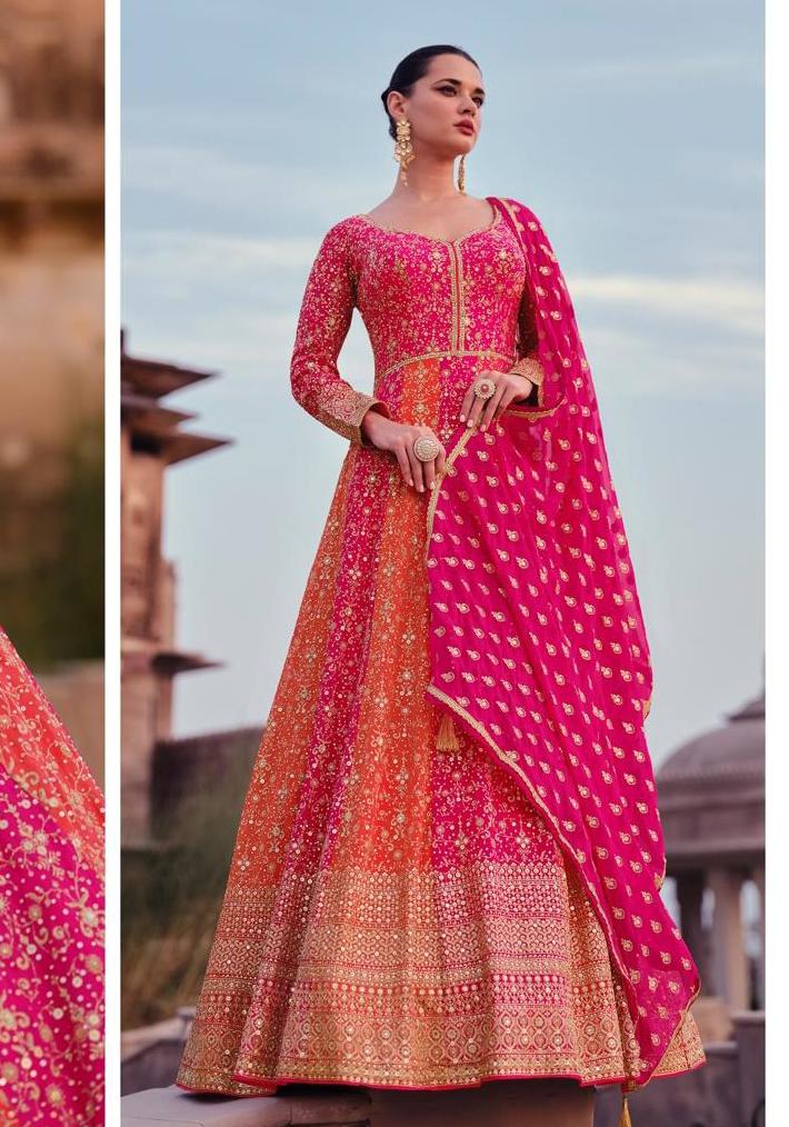 Georgette Medium Violet Red Anarkali Salwar Kameez