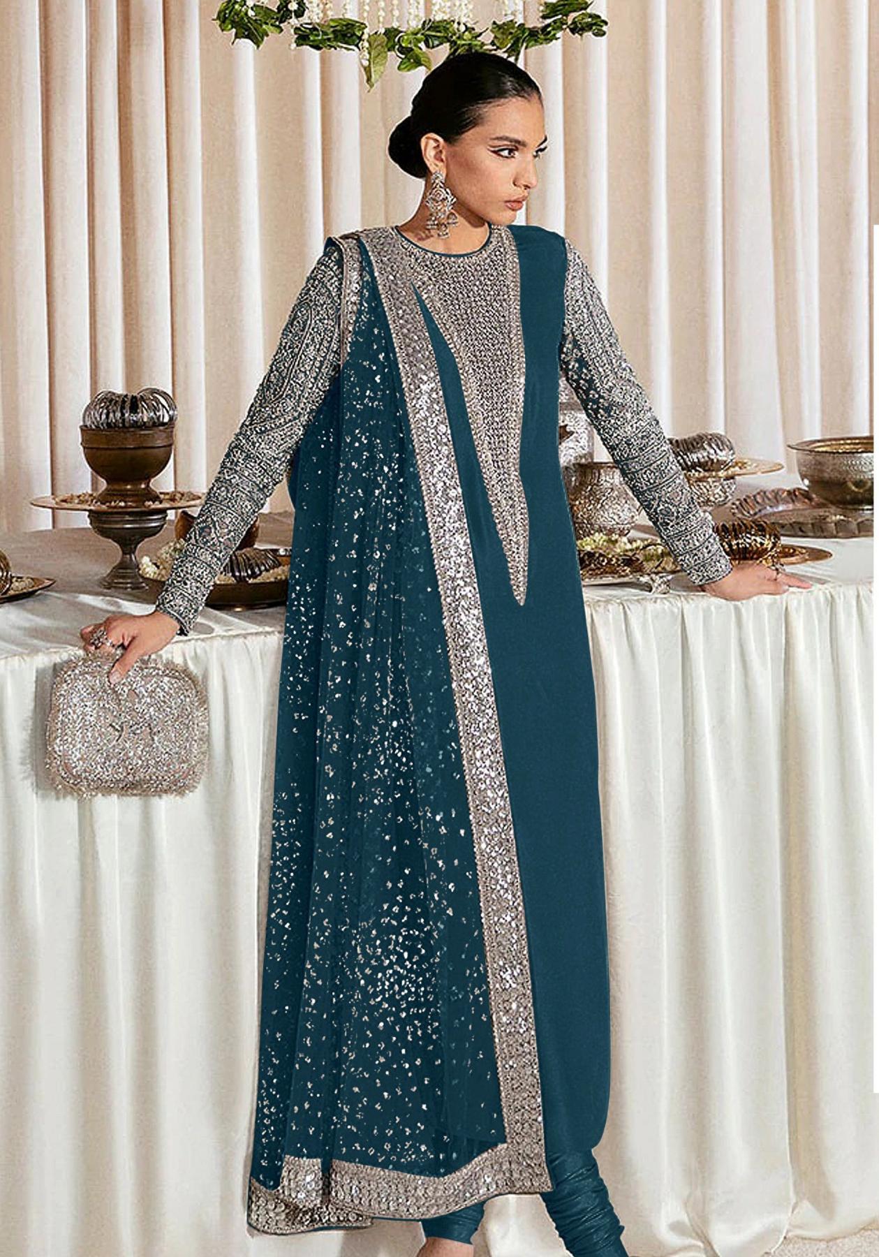 Normally size is measured between the underarm stitching lines from the stressed kameez.