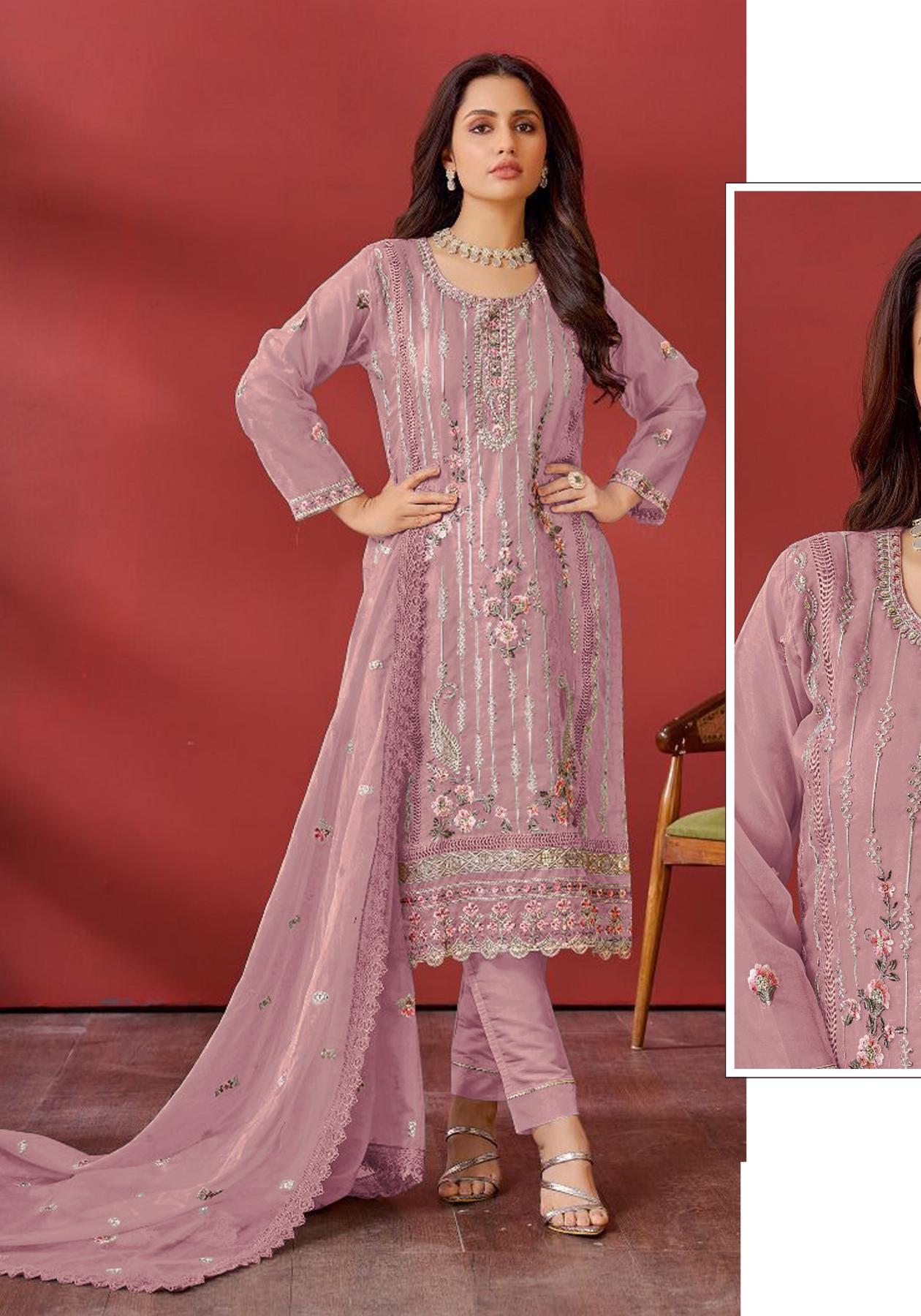 Buy Georgette & Organza Rosy Brown Straight Cut Salwar Kameez online.