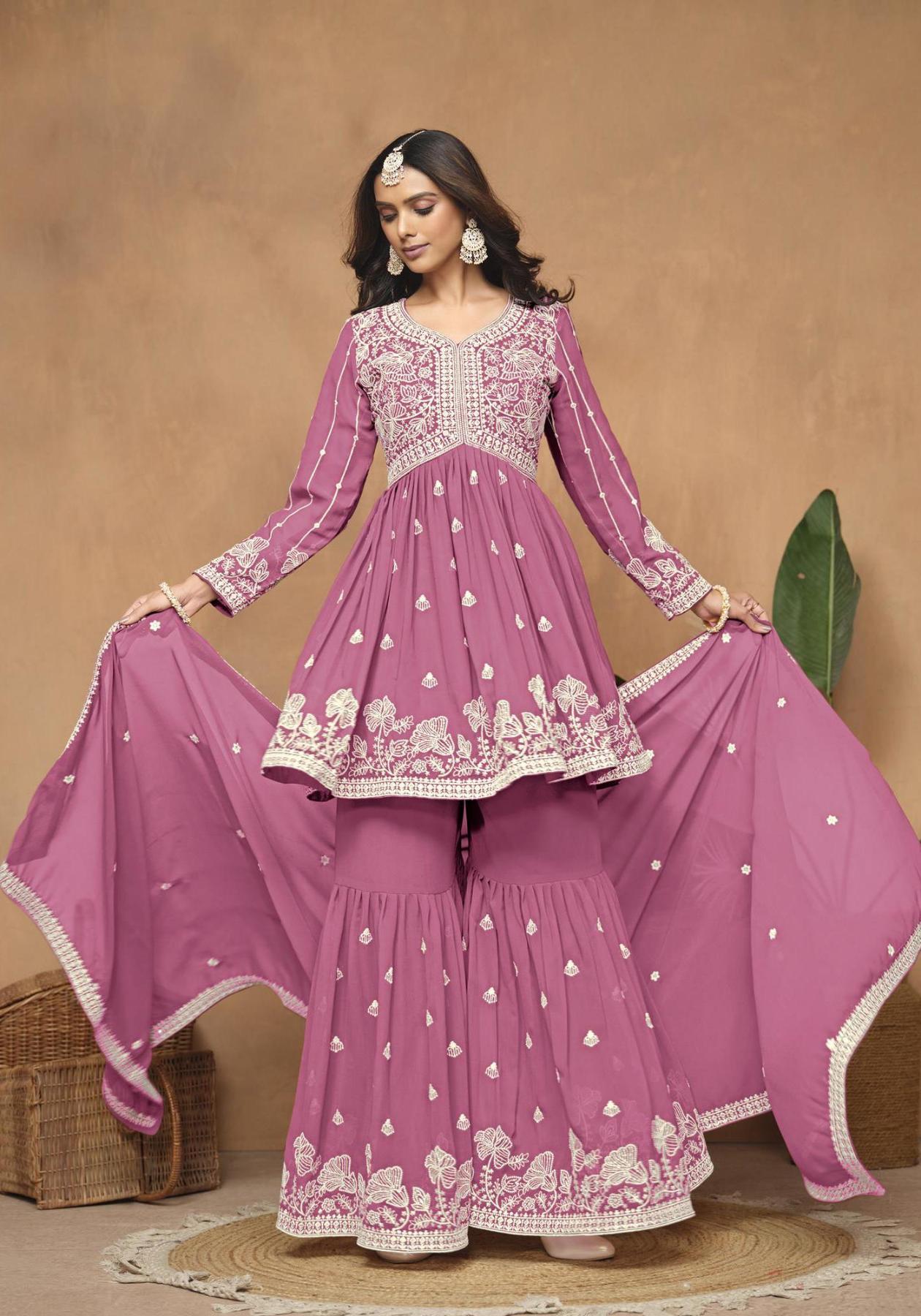 Buy Georgette Pale Violet Red Straight Cut Salwar Kameez online.