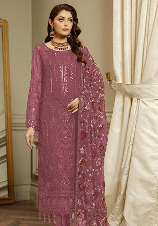 Buy Georgette Rosy Brown Straight Cut Salwar Kameez online.