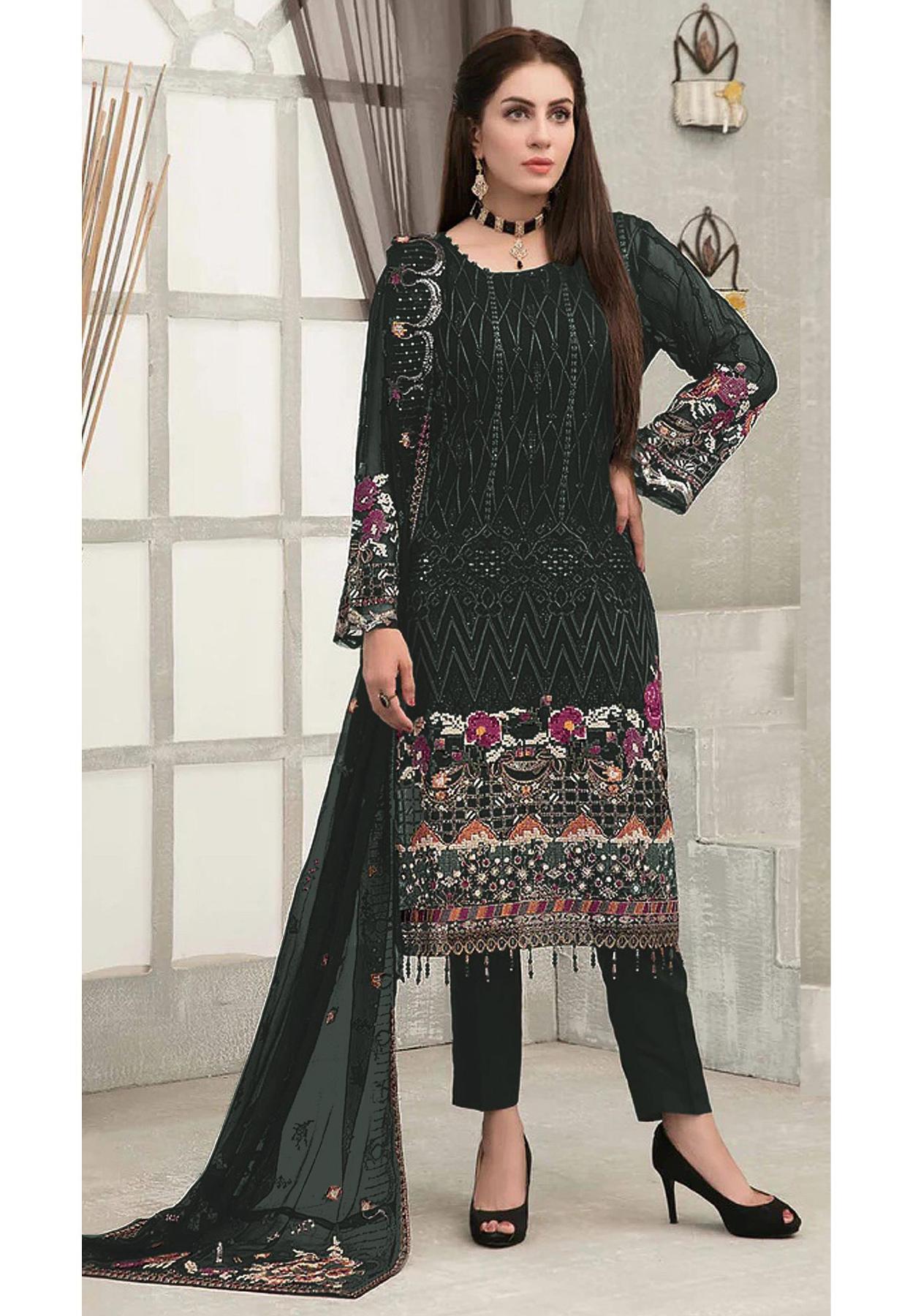 Buy Georgette Sea Green Straight Cut Salwar Kameez online.