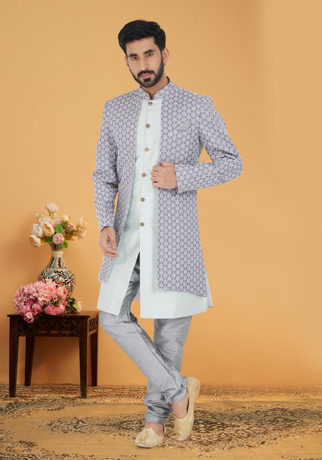 Picture of Georgette & Silk Gainsboro & White Indo Western Picture of Georgette & Silk Gainsboro & White Indo Western Picture of Georgette & Silk Gainsboro & White Indo Western