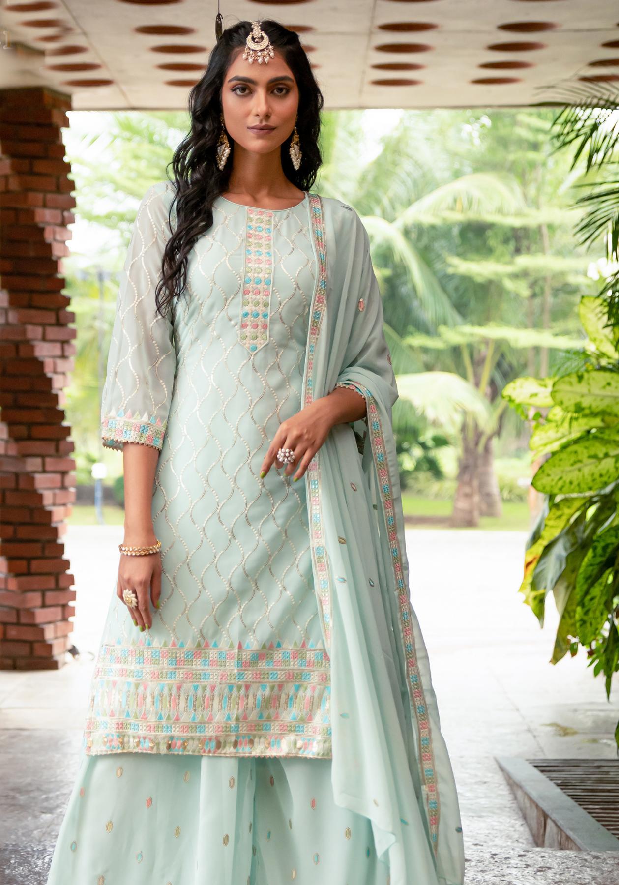 Normally size is measured between the underarm stitching lines from the stressed kameez.