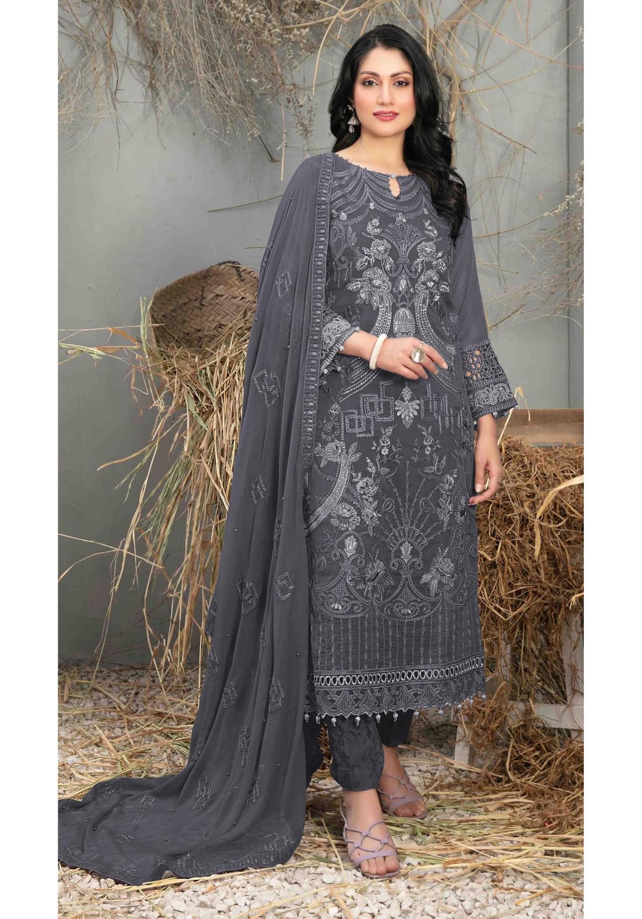 Buy Georgette Slate Grey Straight Cut Salwar Kameez online.
