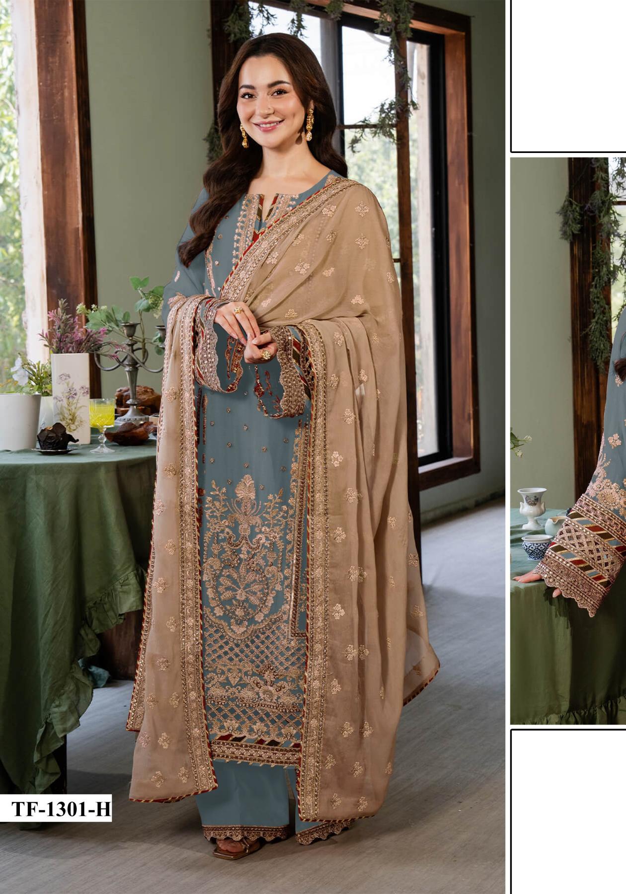 Georgette Slate Grey Straight Cut Salwar Kameez