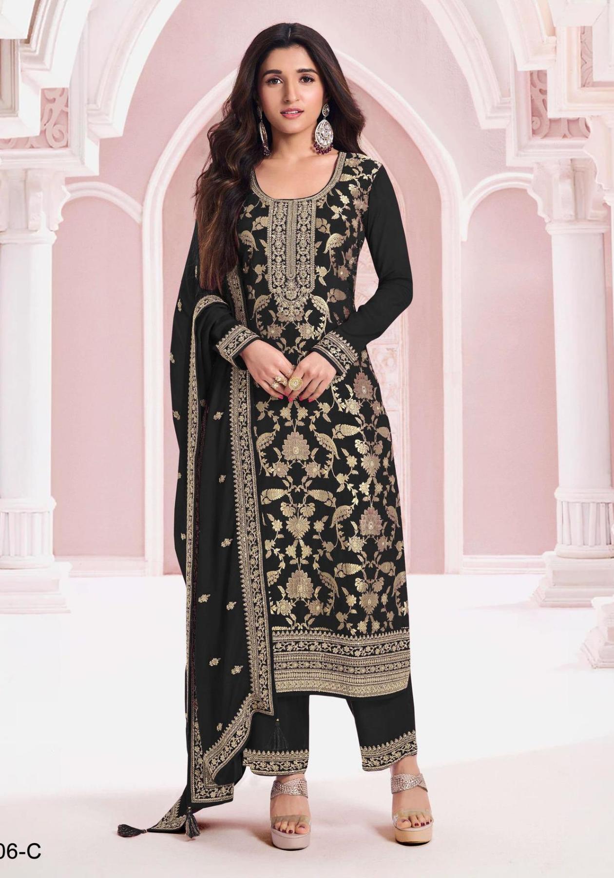 Buy Good Looking Chiffon Black Straight Cut Salwar Kameez online.