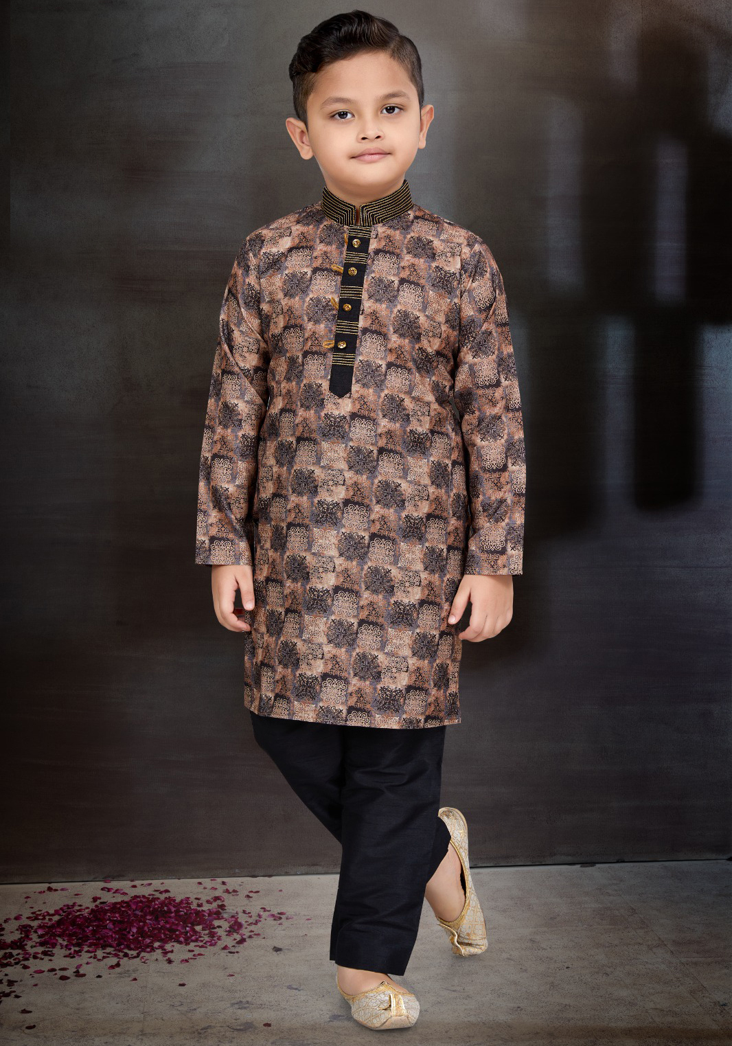 Buy Good Looking Cotton Dark Slate Grey Kids Kurta Pyjama online.