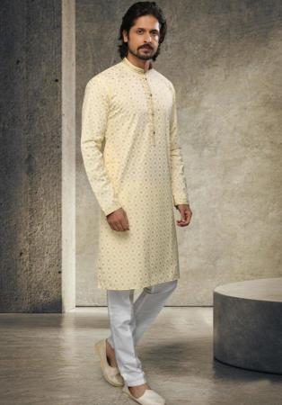 Picture of Good Looking Cotton Pale Golden Rod Kurtas