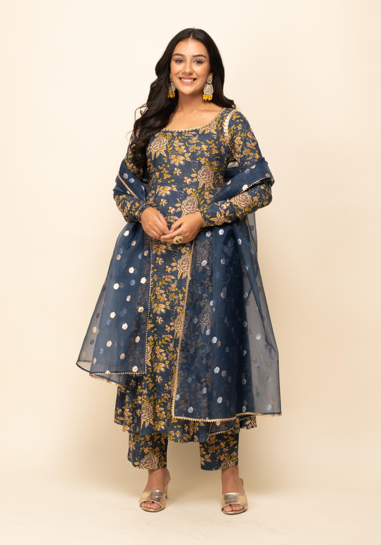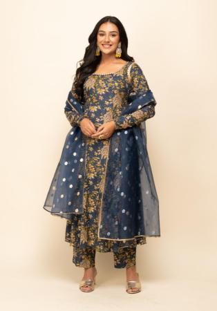 Buy Good Looking Crepe Steel Blue Readymade Salwar Kameez online.