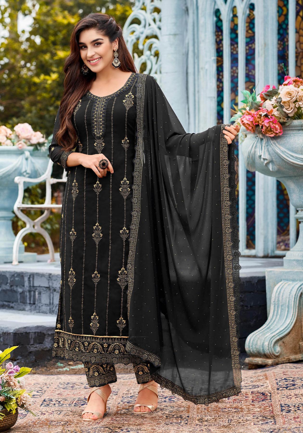 Buy Good Looking Georgette Black Straight Cut Salwar Kameez online.