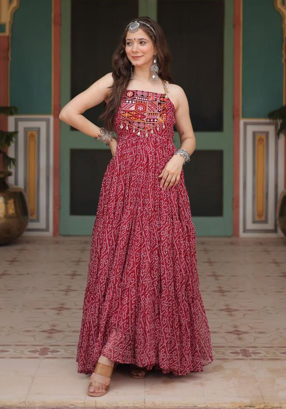 Buy Good Looking Georgette Maroon Party Wear Gown online.