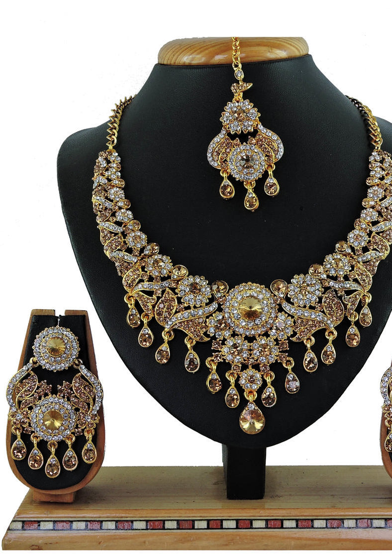 Details: 1 Necklace Set, 2 Earrings, 1 Mang Tikka.