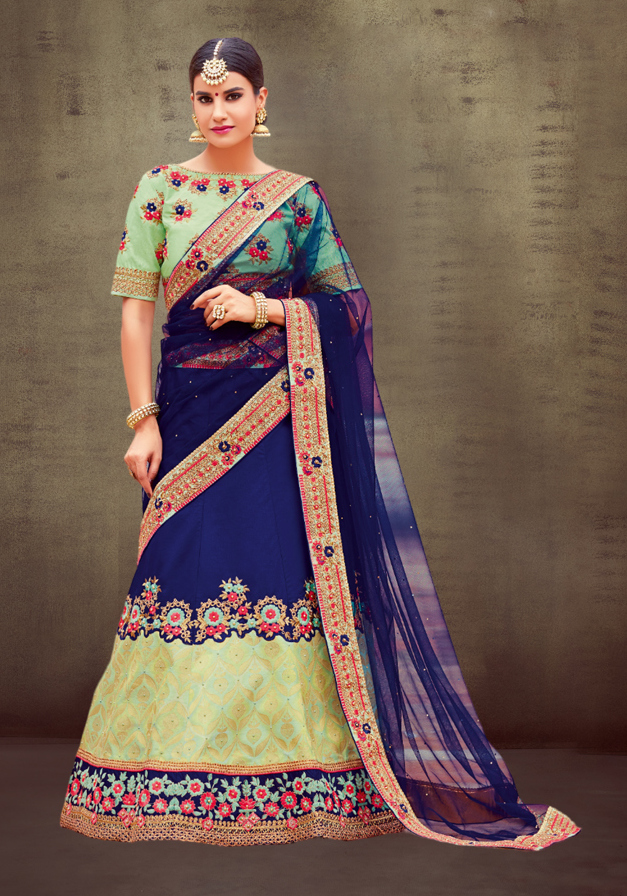Buy Good Looking Net & Satin Midnight Blue Lehenga Choli online.