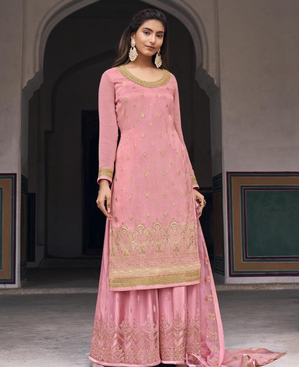 Normally size is measured between the underarm stitching lines from the stressed kameez.