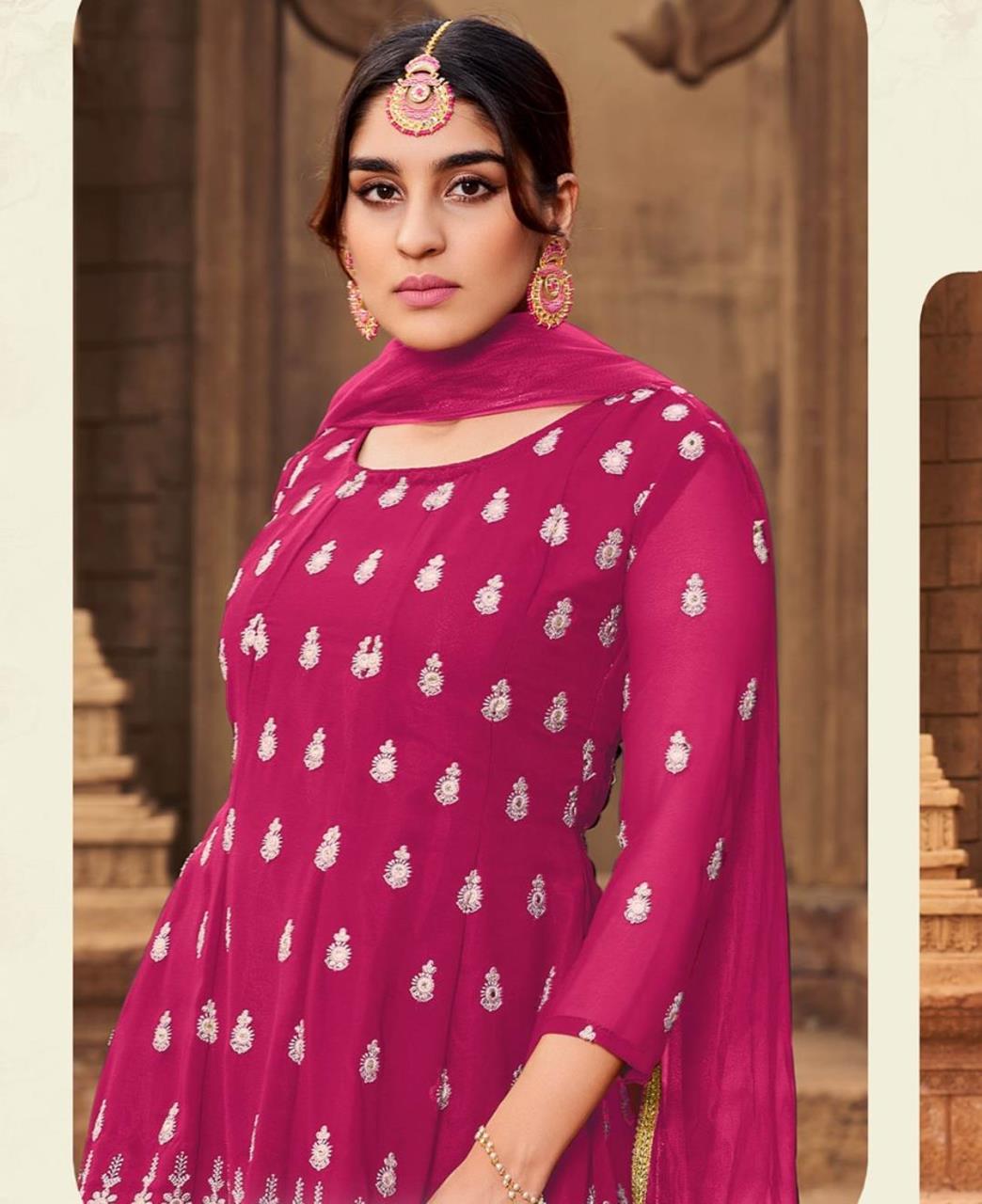 Normally size is measured between the underarm stitching lines from the stressed kameez.