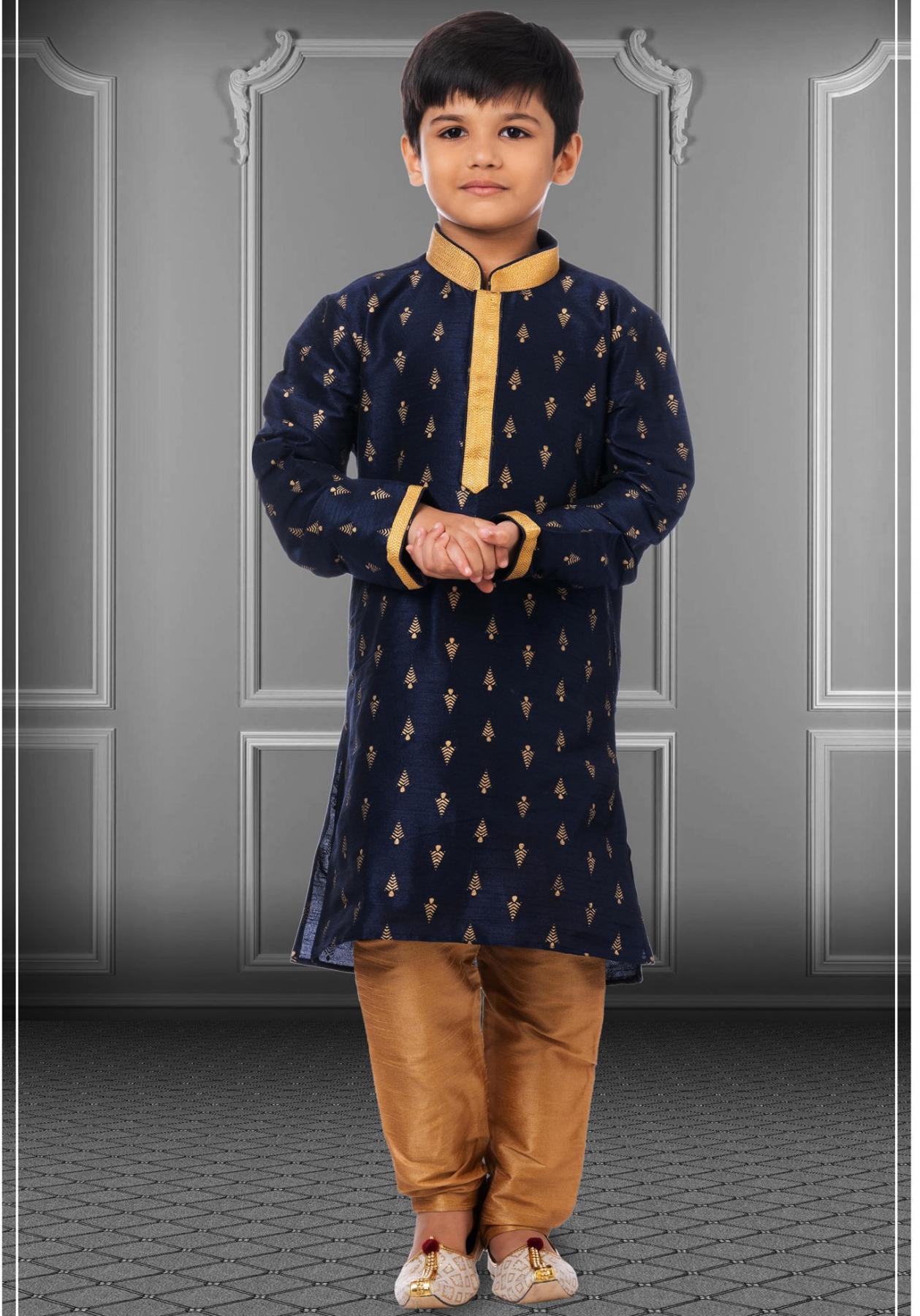 Buy Good Looking Silk Dark Slate Grey Kids Kurta Pyjama online.