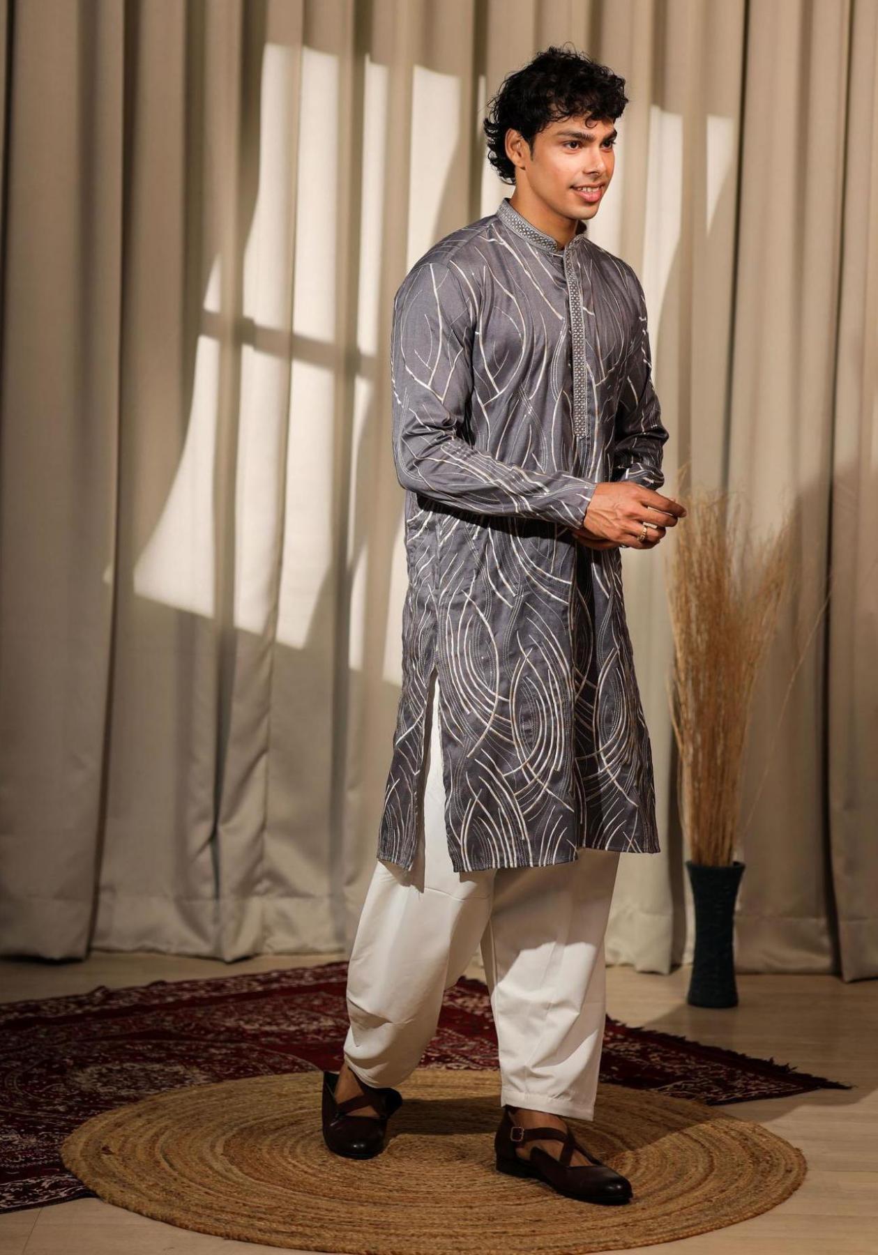 Kurta Color: Bluish Grey.