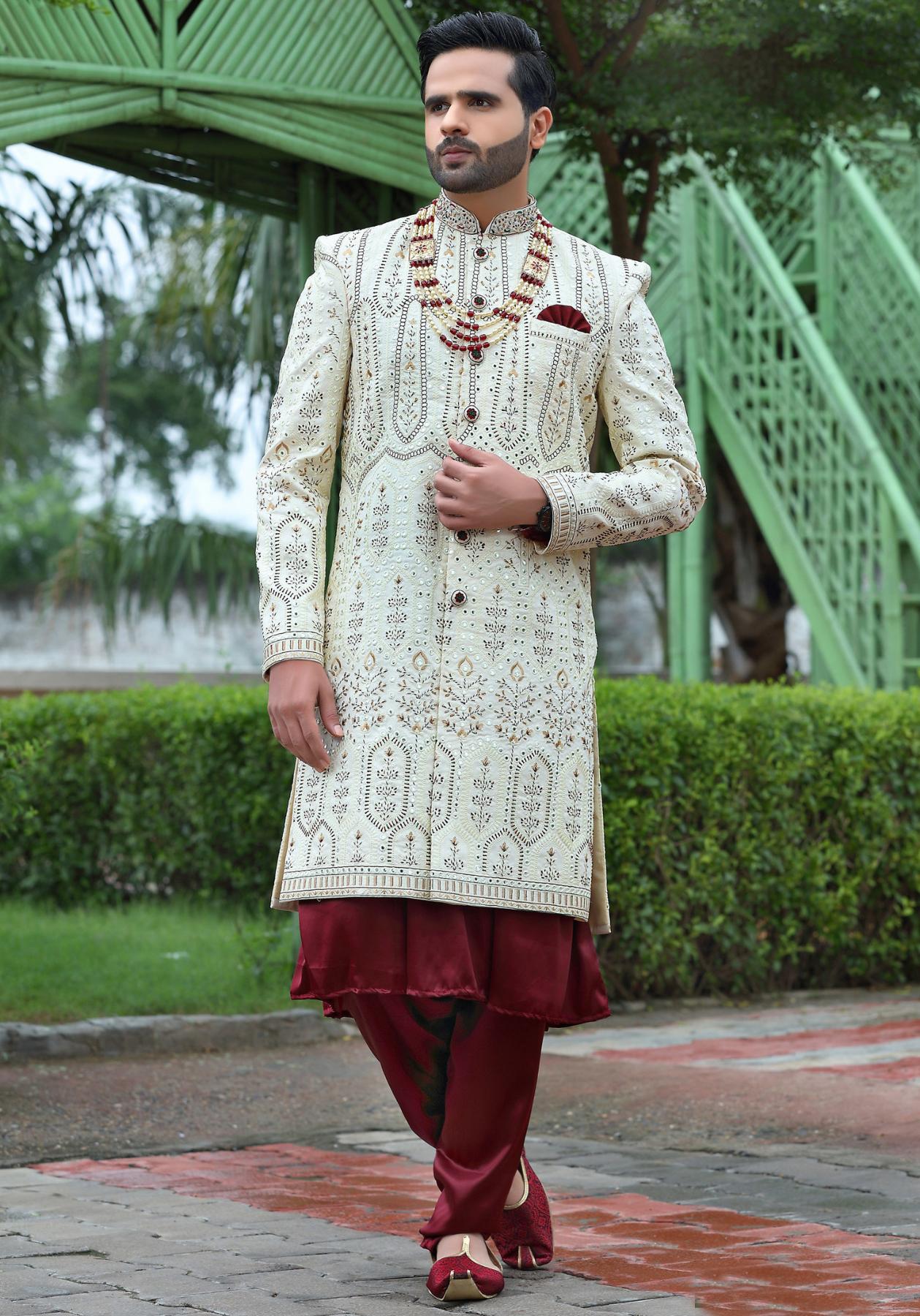 Buy Good Looking Silk Sea Shell Sherwani online.