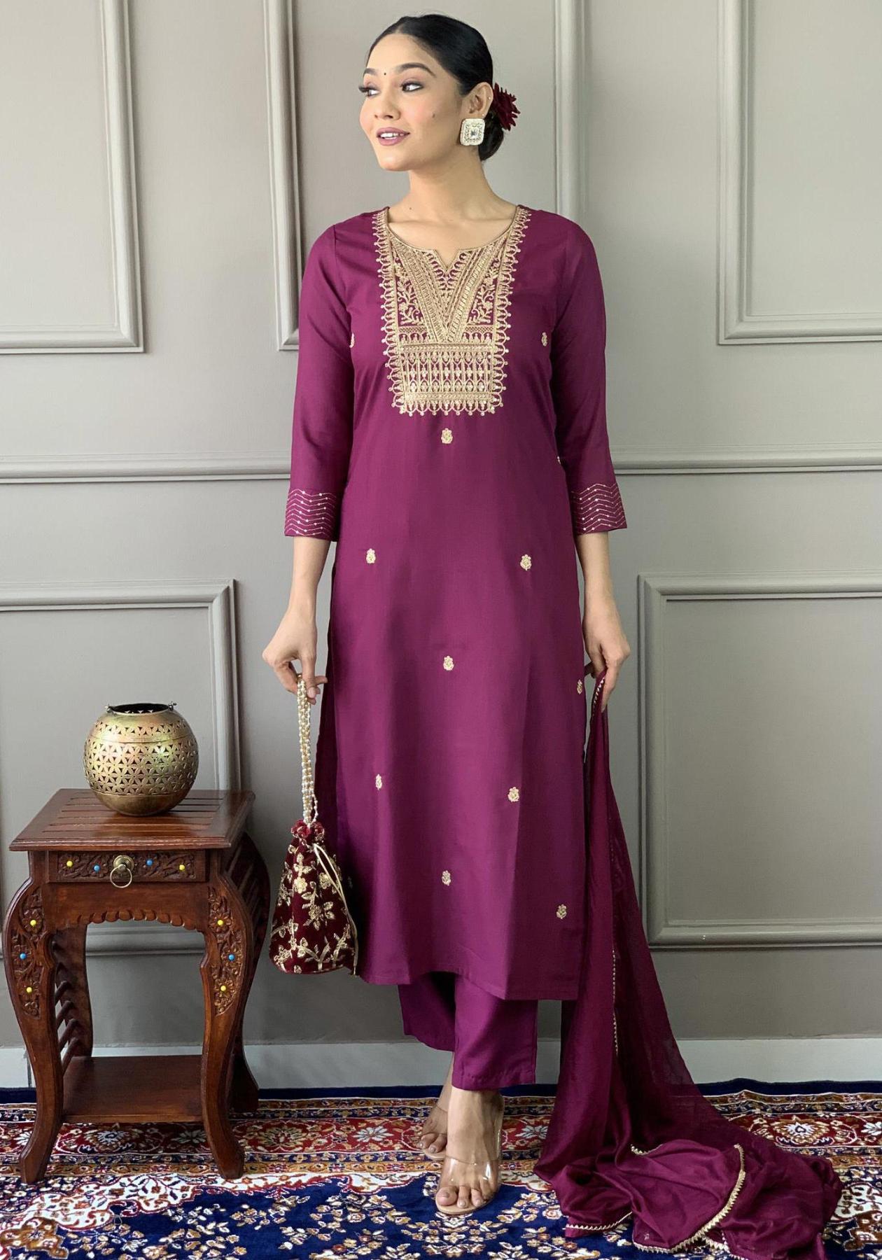 Gorgeous Chiffon Plum Readymade Salwar Kameez