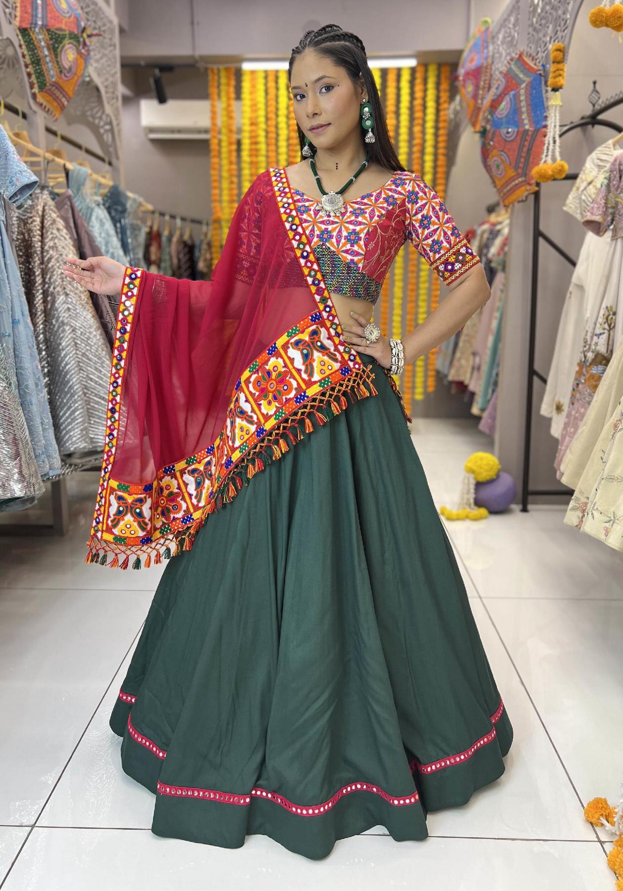 Buy Gorgeous Cotton Sea Green Readymade Lehenga Choli online.