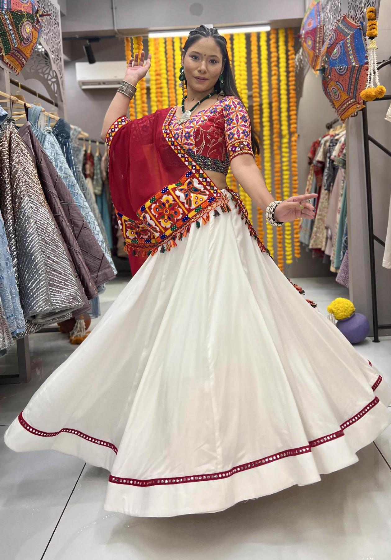 Buy Gorgeous Cotton White Readymade Lehenga Choli online.
