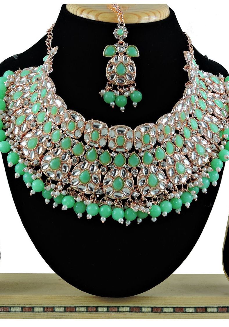 Buy Gorgeous Dark Olive Green Necklace Set online.
