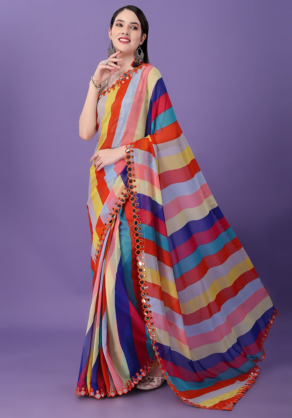In Pre-stitched saree you will get the saree with stitched plates, belt on the waist and adjustable hooks. So you can wear the saree like a skirt