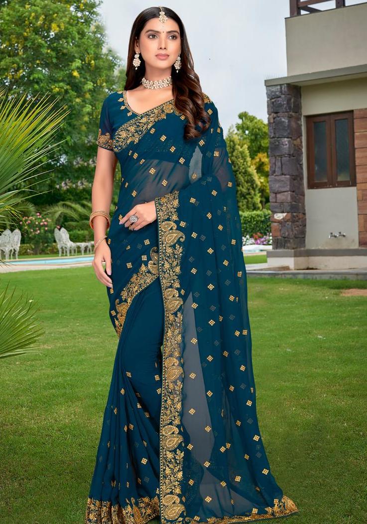 Buy Gorgeous Georgette Navy Blue Saree online.