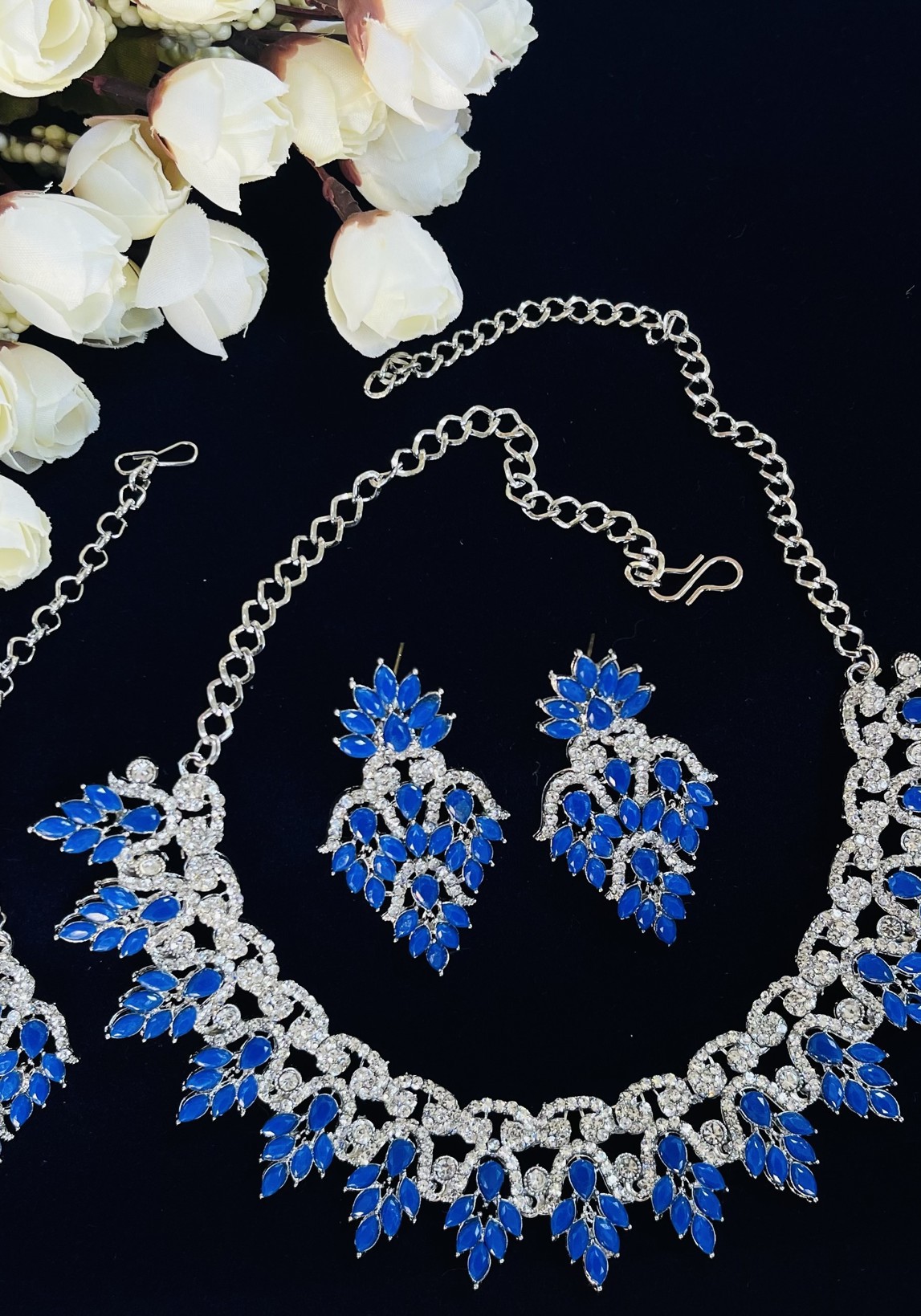 Buy Gorgeous Medium Blue Necklace Set online.