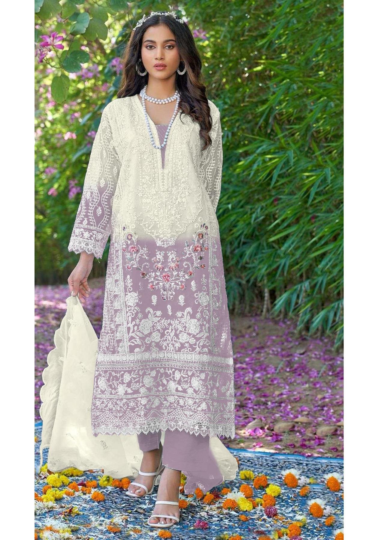 Buy Gorgeous Organza White Straight Cut Salwar Kameez online.