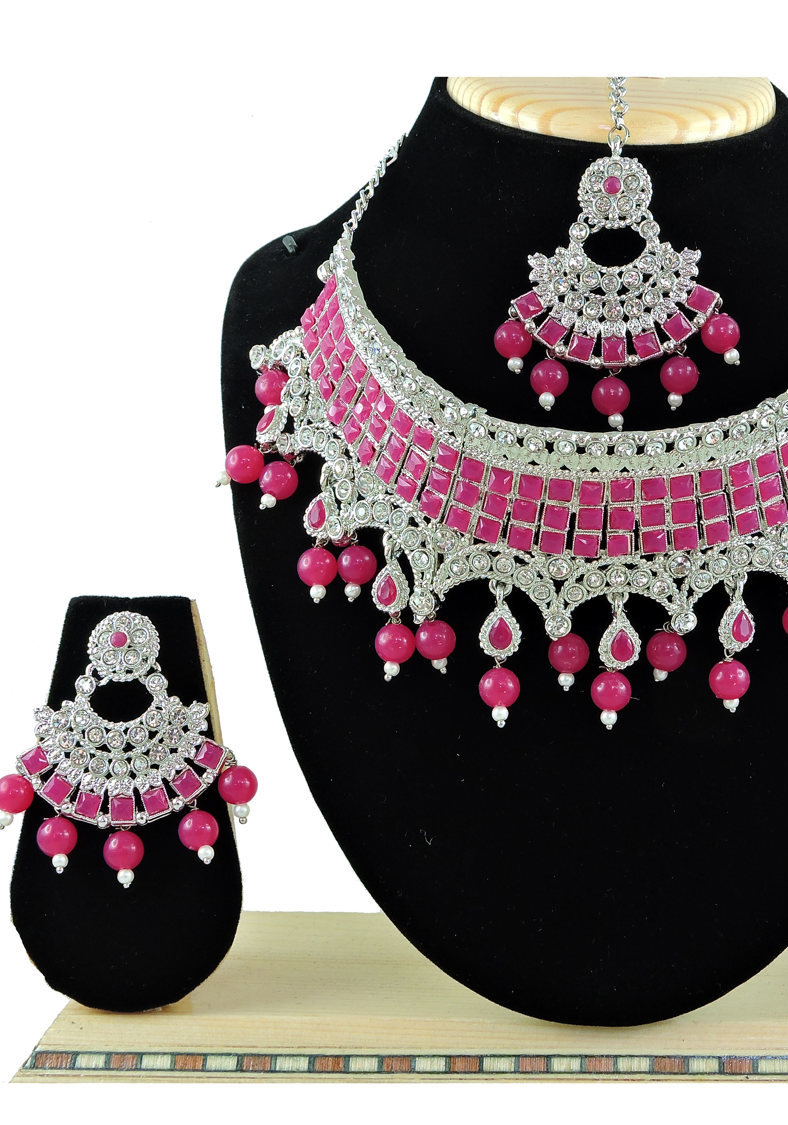 Details: 1 Necklace Set, 2 Earrings, 1 Mang Tikka.