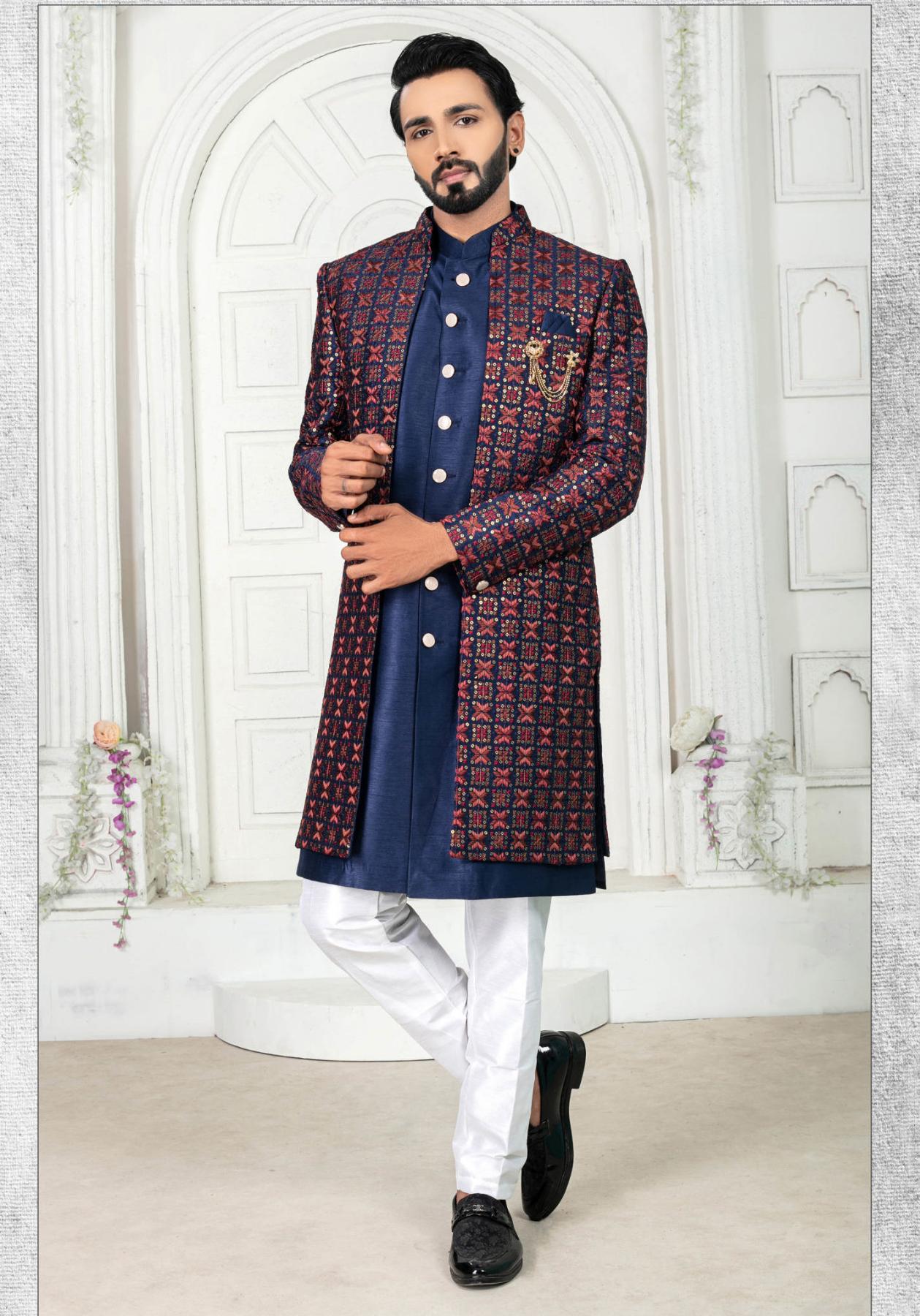 Buy Gorgeous Silk Midnight Blue Indo Western online.