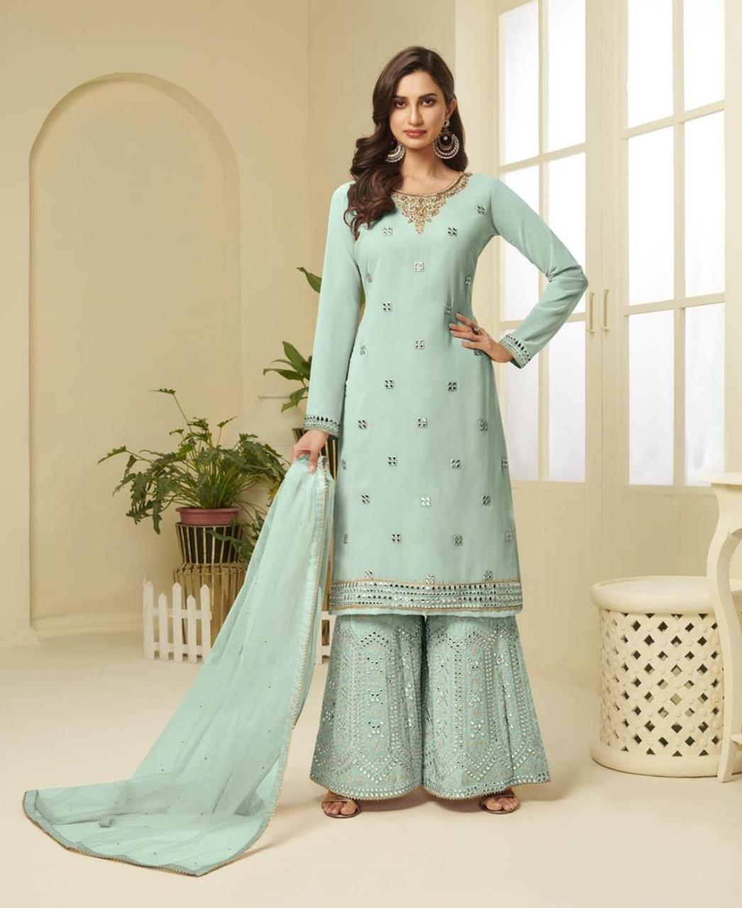 Normally size is measured between the underarm stitching lines from the stressed kameez.